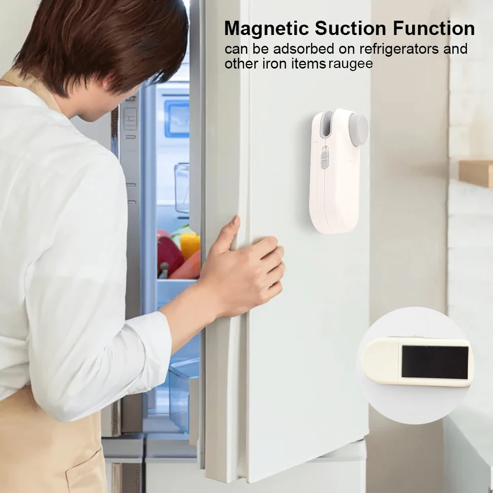 ?Portátil e conveniente?-Projetado com um tamanho compacto, este selador de saco raugee é pequeno e portátil, facilitando o transporte em sua bolsa.A faixa magnética permite prendê-lo convenientemente à geladeira, e o cordão oferece opções fáceis de pendurar, tornando-o um utensílio de cozinha essencial, também perfeito para viagens, caminhadas, camping e outras atividades.