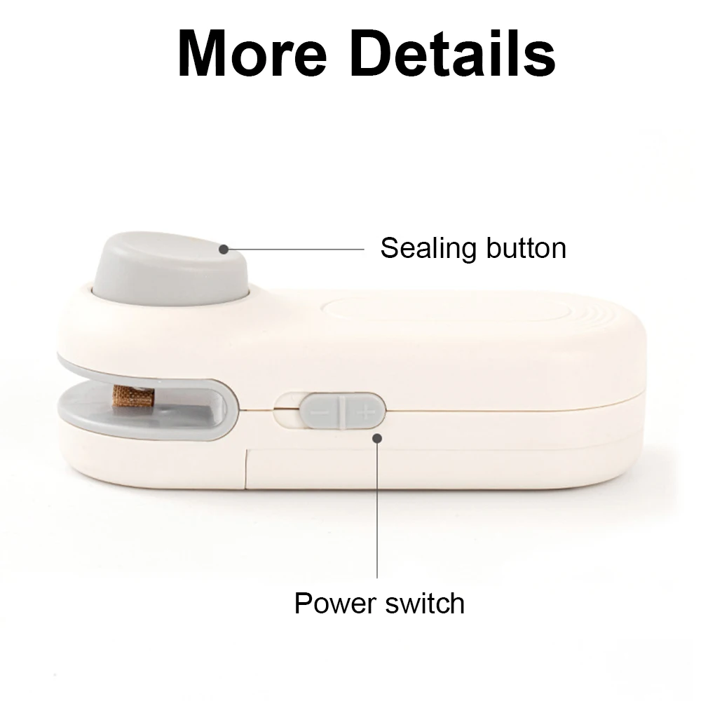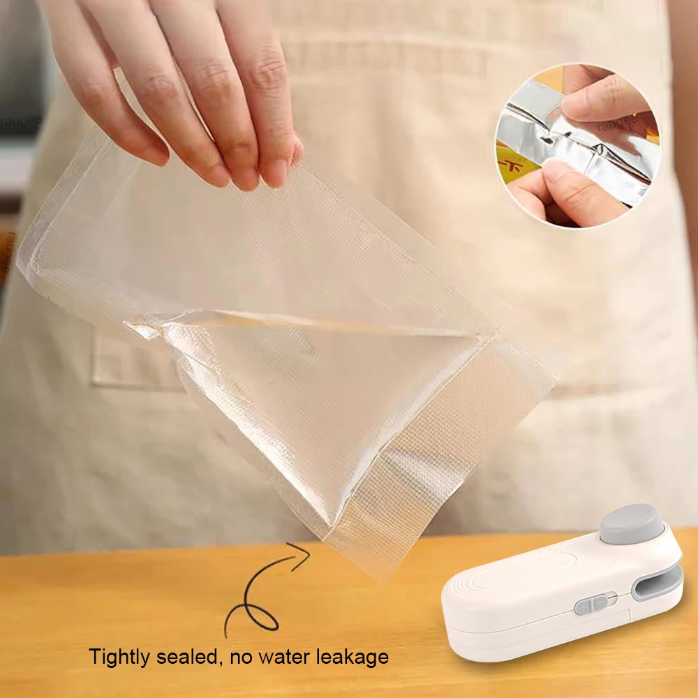 ?Aplicações versáteis?-A mini máquina seladora de sacos de lanches é adequada para vários tipos de sacos, incluindo sacos de lanches, sacos de chips, sacos de vácuo e muito mais.mantenha os lanches frescos e evite que frutas e vegetais estraguem.